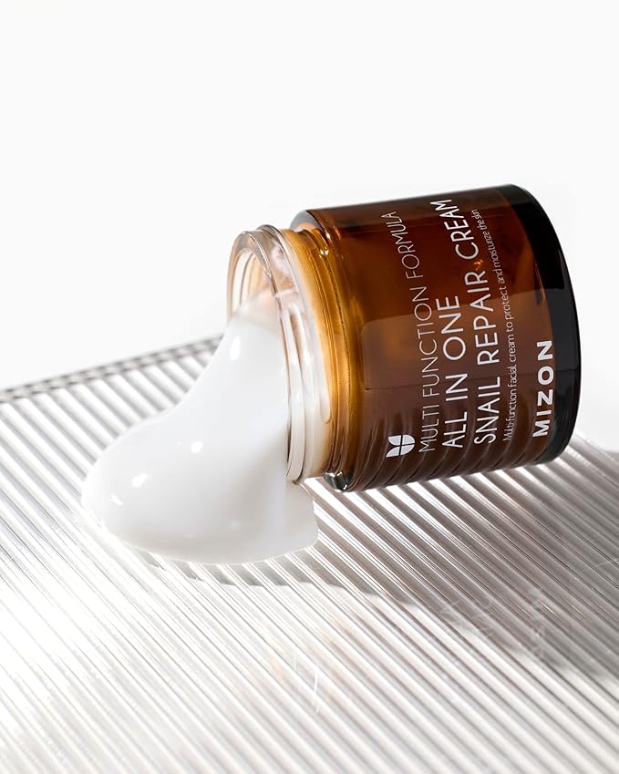 MIZON All-in-One Snail Repair Cream Korean Face Moisturizer with Snail Mucin 12 Natural Extracts Hydrating Nourishing Cream for Fine Lines Wrinkles & Blemish Care (2.53 Fl Oz Pack of 2)