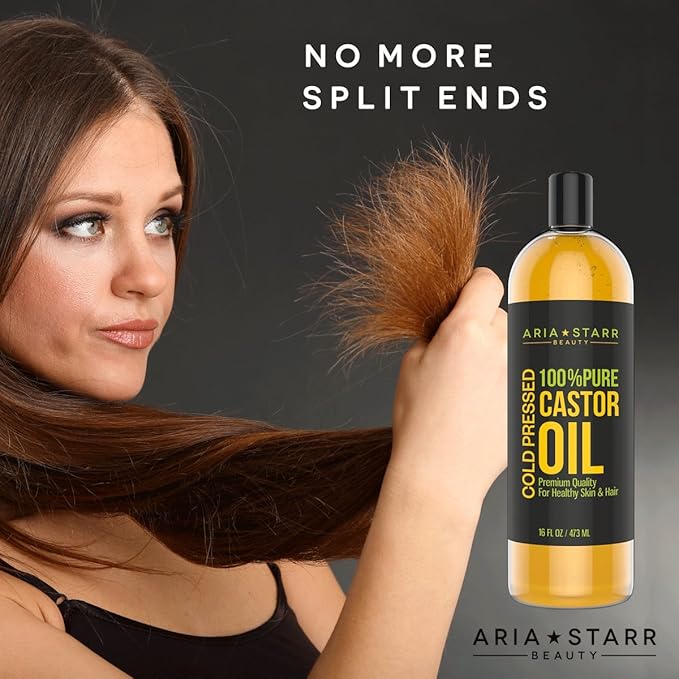 Aria Starr Castor Oil Cold Pressed - 16 FL OZ - 100% Pure Hair Oil For Hair Growth, Face, Skin Moisturizer, Scalp, Thicker Eyebrows And Eyelashes