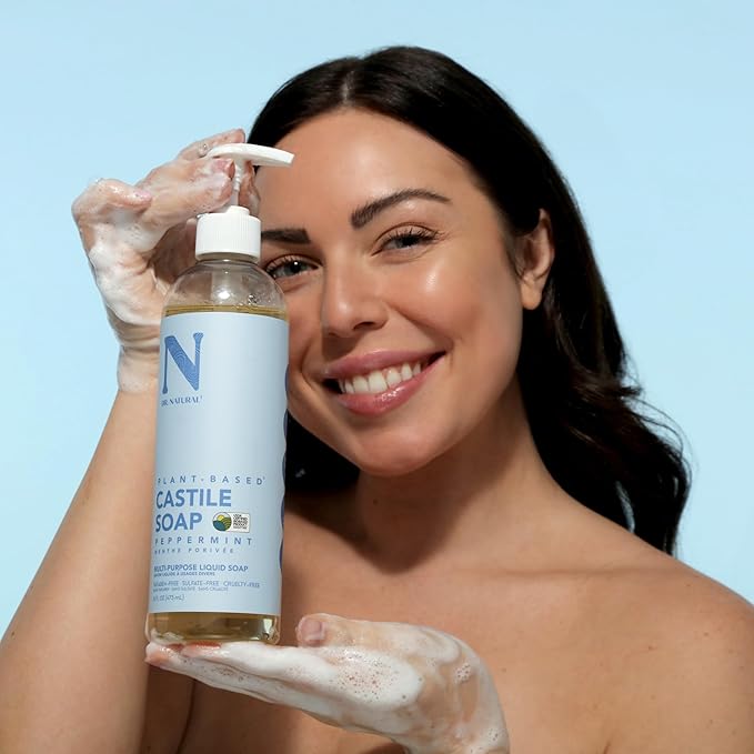 Dr. Natural Castile Liquid Soap - Multi-Use Body Wash, Shampoo and Face Wash - Hydrating Body Soap for Skin, Hair, Pets and Home - Peppermint - 16 oz