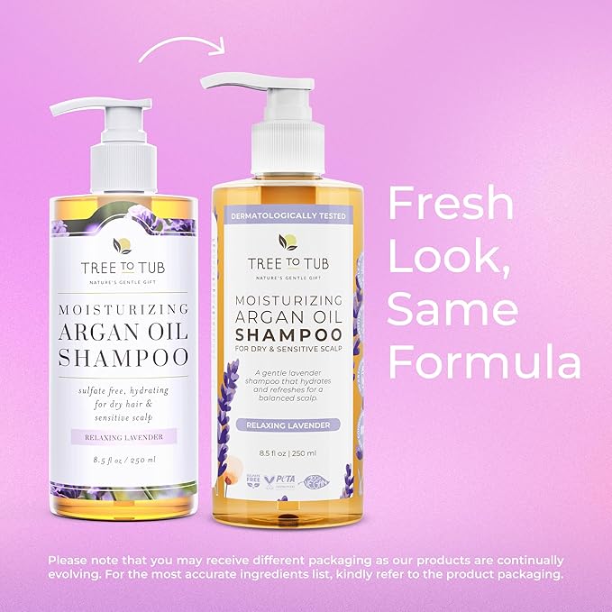 Tree to Tub Lavender Dry Hair Shampoo for Sensitive Scalp - Gentle Hydrating Dry Scalp Shampoo for Women & Men, Moisturizing Sulfate Free Shampoo w/Organic Argan Oil, Chamomile, All Natural Aloe Vera