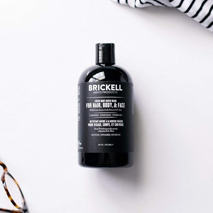 Brickell Men's Rapid Wash, Natural and Organic 3 in 1 Body Wash Gel for Men, 16 Ounce, Fresh Mint Scent