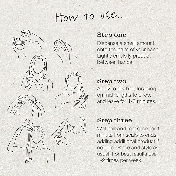 - EASY TO USE: Step one, apply to dry hair, focusing on mid-lengths to ends, and leave for 1-3 minutes. Step two, massage for 1 minute, from the scalp to the ends before rising. For optimal results, use once or twice a week.