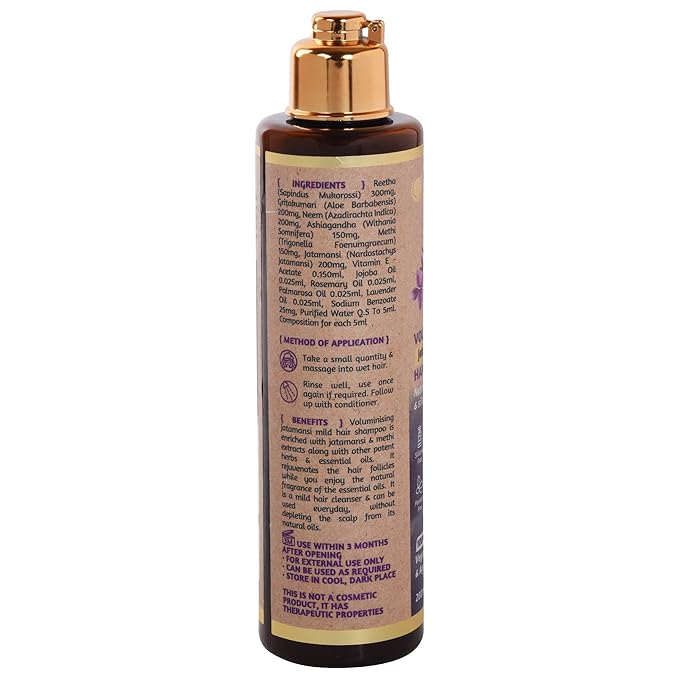 ROOTS AND HERBS Vegan Jatamansi Hair Shampoo - Volume Hair Treatment Cleanser for growth, oily scalp, keratherapy, protecting coloured hair - Organic Anti-Dandruff Formula with itch relief 6.76 oz