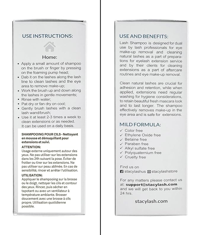 - Its foamy and gentle formula makes it a star of the show in your lash cleaning kit. Available in many sizes for all occasions, like travel size shampoo, as well as home and salon edition. Our lash extension cleanser is vegan and not tested on animals.