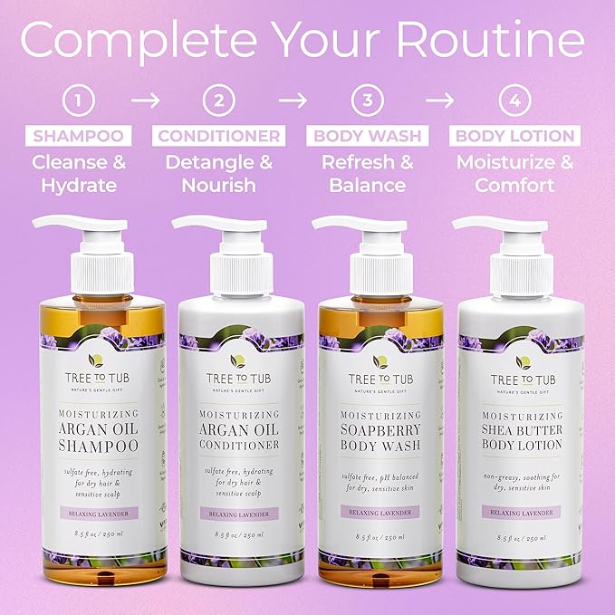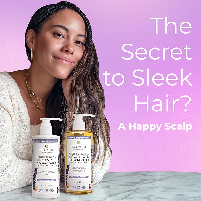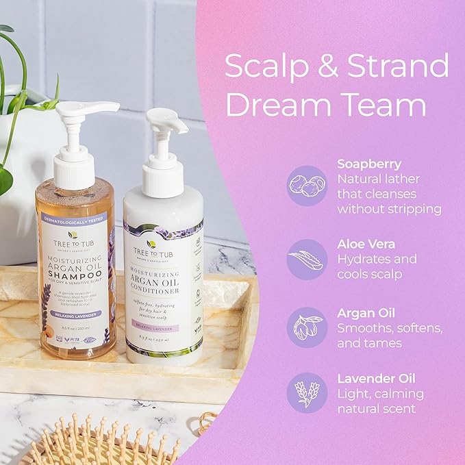 Gentle Argan Oil Shampoo & Conditioner by Tree to Tub—pH 5.5 Balanced Moisturizing Duo with Wild Soapberry & Organic Moroccan Oil - Nourishes Dry Hair & Very Sensitive Scalp, Sulfate Free (2 Pack)