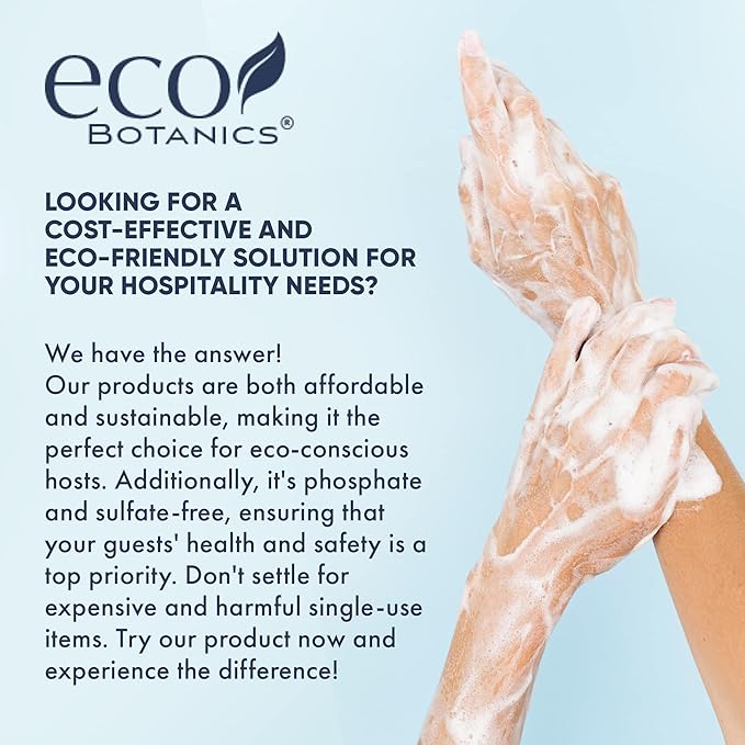 - LUXURIOUS HOTEL-QUALITY AMENITIES: Refill your wall-mounted or stand-alone pump bottle dispensers with our 4-gallons of Eco Botanics formulas, enriched with organic aloe, honey, and olive oil making it suitable for daily use and gentle enough for sensitive skin and hair. Perfect for hotels, vacation rentals like Airbnb and VRBO, guest rooms, and even home use.Diversified Hospitality Amenities, ideally designed and packaged to provide GREAT LOOKING hospitality service.