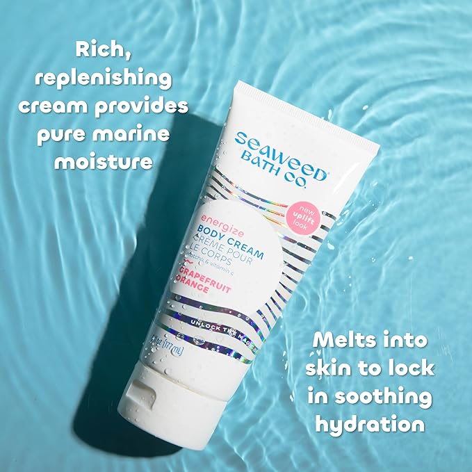 Seaweed Bath Co. Energize Body Cream - Grapefruit Orange | Hand and Body Lotion with Vitamin C, Hyaluronic Acid and Shea Butter | Invigorating Moisturizer For Dry Skin | 6 oz