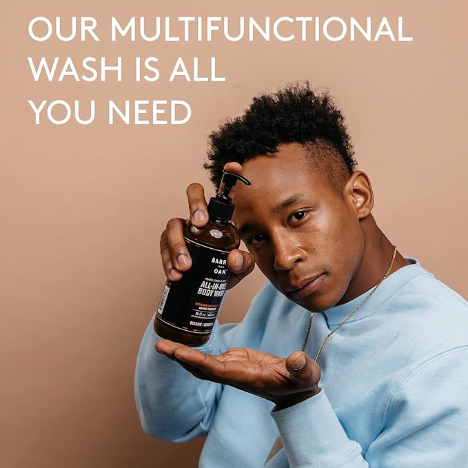 Barrel and Oak - All-In-One Body Wash, Men's Body Wash, Men's Soap for Hair, Face, & Body, Refreshing & Balanced Cleanser, Oil-Based(Black Oak, 16 oz)