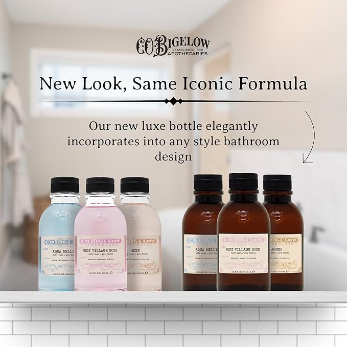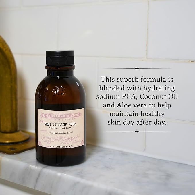 C.O. Bigelow West Village Rose Body Wash, Iconic Collection Moisturizing Body Wash with Coconut Oil & Aloe Vera, 10.5 Fl Oz