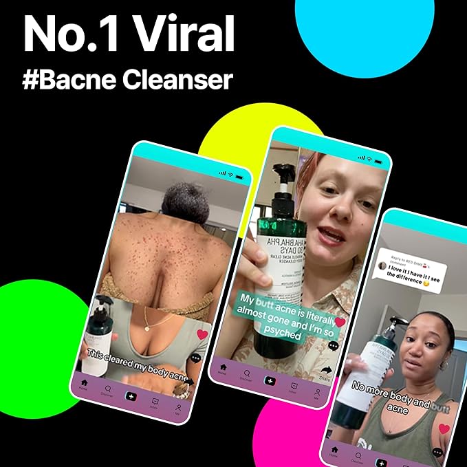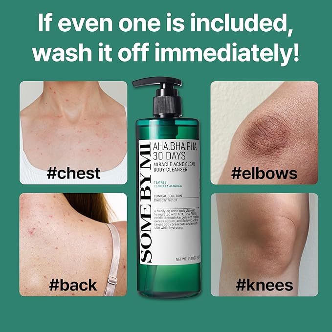- MIRACLE BODY CLEANSER : This body cleanser is specifically designed for Body Acne skin and contains AHA, BHA, and PHA, which help to remove dead skin cells, sebum, and skin waste. The product's micro-bubble technology is effective in cleansing pore waste, while natural cleansing surfactants are used to protect sensitive skin. Additionally, the product is free of 20 types of artificial ingredients and has been dermatologically tested for sensitive skin