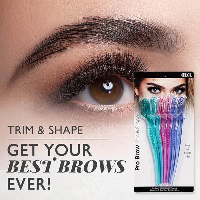 - Affordable Six Eyebrow Trimmer: Ready, set, shave! Ardell's Pro Brow Trim and Shape razors are perfect for on-the-go touch-ups and missed spots. This pack includes six disposable grooming razors, ideal for your car or desk for quick fixes anytime.