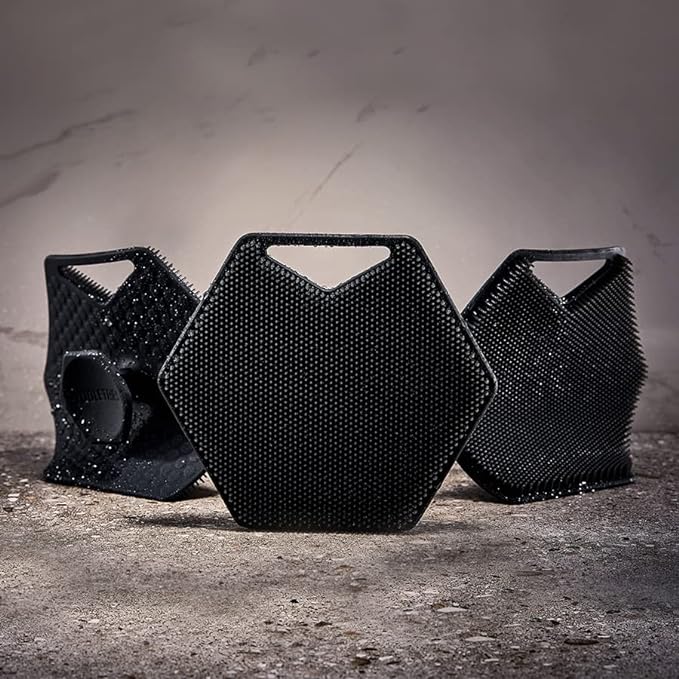 TOOLETRIES Body Scrubber - Exfoliates & Deep Cleans - Silicone Shower & Bathroom Accessory with Bespoke Bristles and Ergonomic Handles - Charcoal