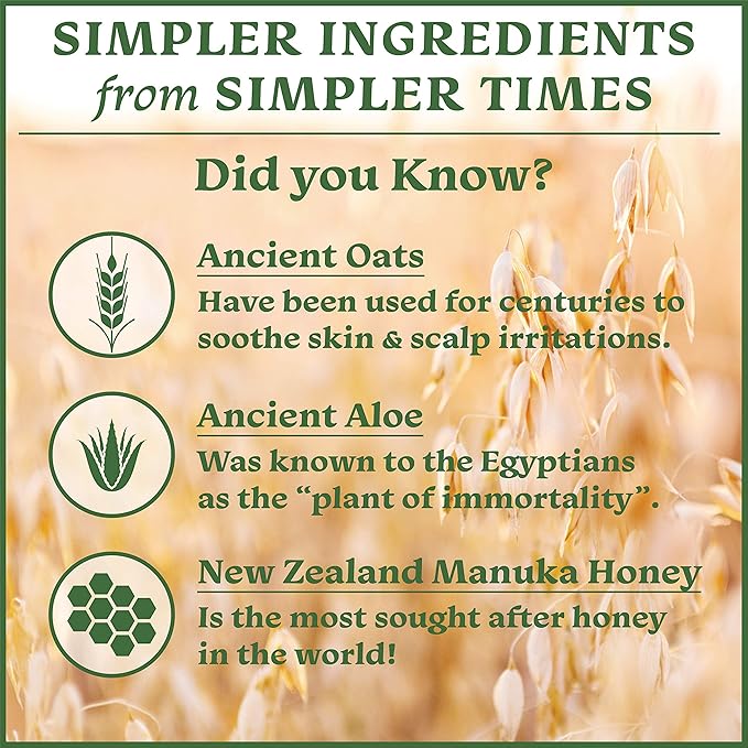 - Ingredients including Aloe Vera, Manuka Honey, Oat, Cehami Plant Extract, Orange Oil