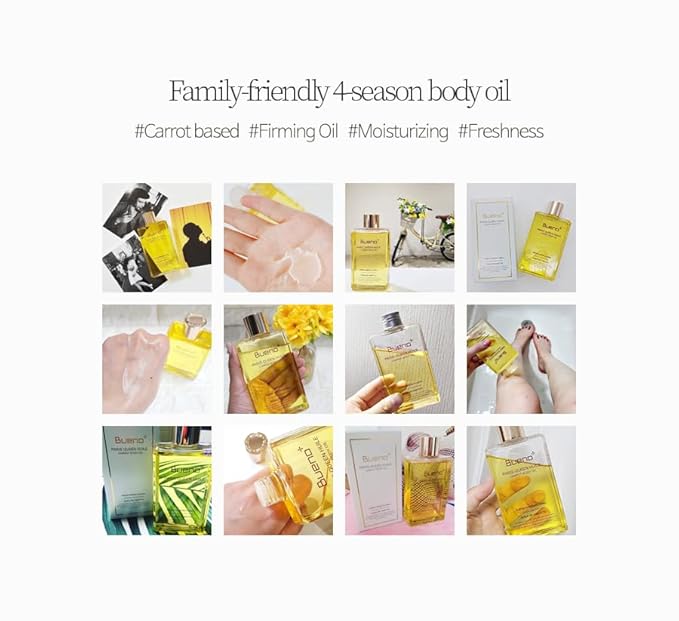 Bueno+ PARIS QUEEN HUILE CARROT BODY OIL | Hydrates & Protects Skin with Carrot Extract, Beta-Carotene | Protective Nutrition Supply Moisturizing Elasticity Dry Moisture | 6.7 Fl Oz