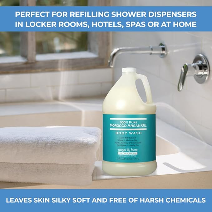 Ginger Lily Farms Salon Formula 100% Pure Morocco Argan Oil Body Wash for All Skin Types, 100% Vegan & Cruelty-Free, 1 Gallon (128 fl oz) Refill