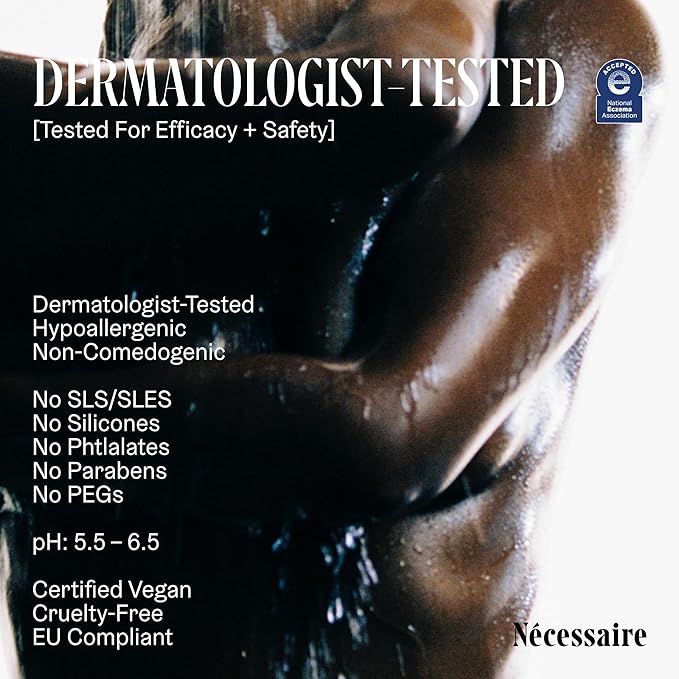 Nécessaire The Body Wash. Fragrance-Free. Multi-Vitamin Gel Cleanser. Nourish, Soften. Hypoallergenic. Dermatologist-Tested. No SLS/SLES. 250 ml / 8.4 fl oz