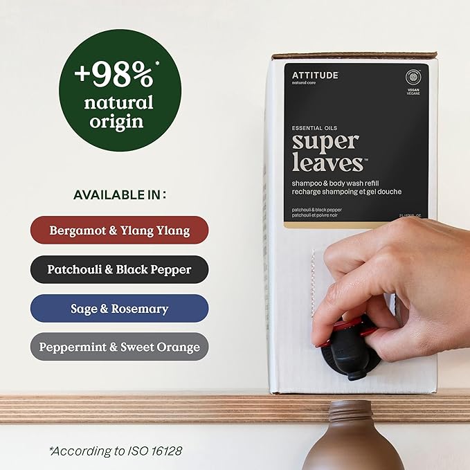ATTITUDE 2-in-1 Body Wash and Hair Shampoo, EWG Verified Shower Gel, Dermatologically Tested, Made with Naturally Derived Ingredients, Vegan Personal Care, Peppermint and Sweet Orange, 67.6 Fl Oz