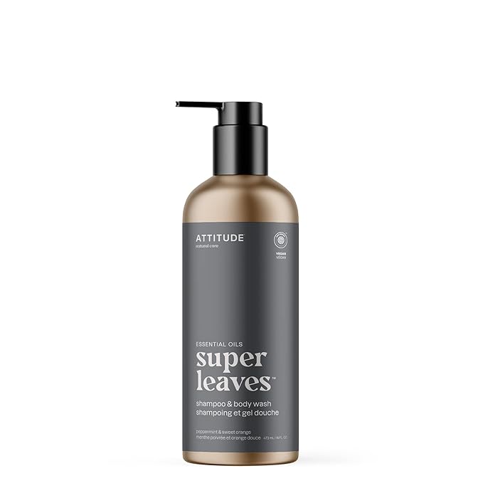 ATTITUDE 2-in-1 Body Wash and Hair Shampoo, EWG Verified Shower Gel, Dermatologically Tested, Made with Naturally Derived Ingredients, Vegan Personal Care, Peppermint and Sweet Orange, 16 Fl Oz