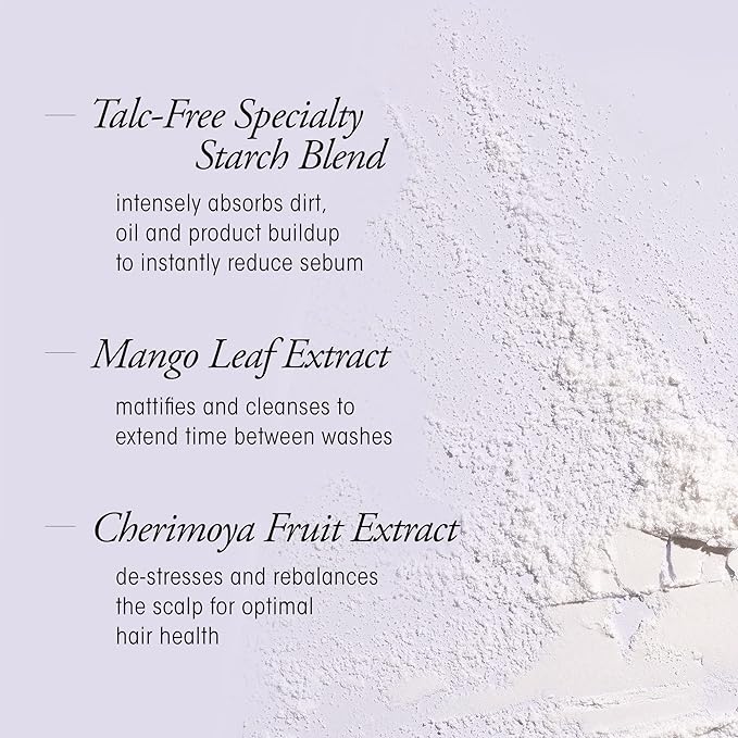 - Product Benefits : Intensely absorbs oil, dirt and product buildup. Visibly reduces the appearance of oil making hair appear “just washed”. Regulates and prevents excess sebum and oil. Extends time between washing while leaving hair ultra clean. Balances and supports a healthy scalp microbiome. Intensely absorbs oil, dirt and product buildup. Visibly reduces the appearance of oil making hair appear “just washed”. Regulates and prevents excess sebum and oil. Extends time between washing while leaving hair ult… See more