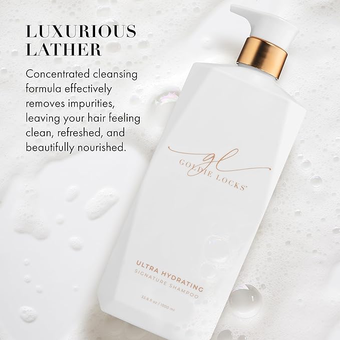 Goldie Locks Ultra Hydrating Signature Shampoo, Safe for Hair Extensions & Colored Hair, Maintains Texture & Shine, Encourages Healthy Hair Growth, Protein-Free, Sulfate-Free, Moisturizing, 33.8 Fl Oz