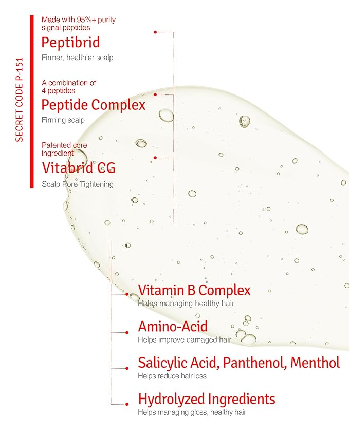 - SCALP ANTI-AGING AND HAIR LOSS RELIEF: Vitabrid C12 Scalp+ Shampoo is powered by the unique Secret Code P-151, effectively cleansing the scalp and hair while protecting against aging. It helps maintain healthy, stronger hair by utilizing collagen-boosting peptides to invigorate the scalp and promote healthy hair growth.
