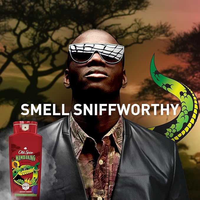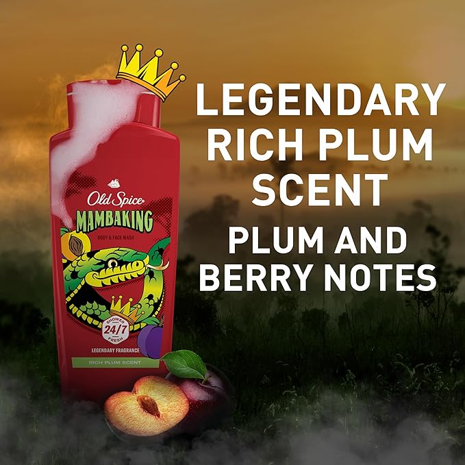 - Old Spice MambaKing Body Wash smells like plum, berry and amber notes
