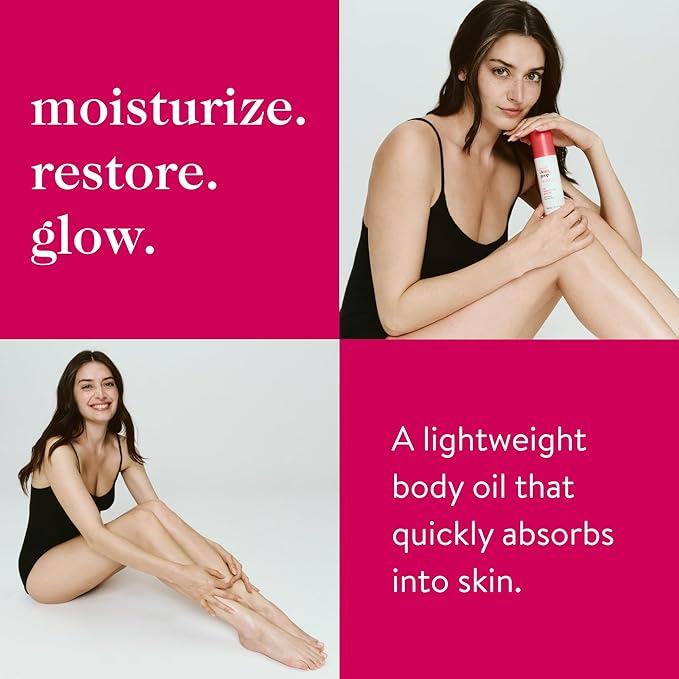 - Natural Body Oil: This lightweight body oil quickly absorbs into the skin, leaving the skin barrier hydrated and nourished with a radiant glow.