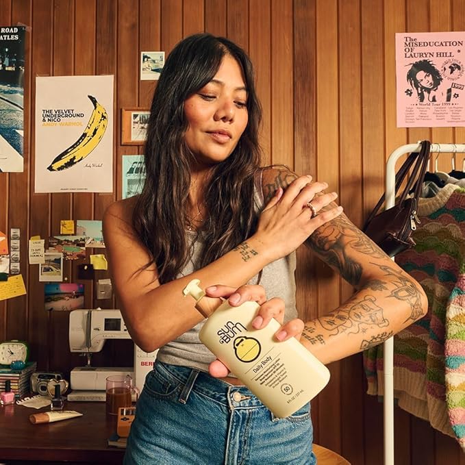 - DAILY 50 BODY LOTION. Think of your favorite body lotion, but with SPF benefits. Enriched with Vitamin E and Antioxidants, our Daily 50 Body Lotion feels lightweight, provides 24-hour moisture, and protects against UVA/UVB rays. Plus, it kinda makes us wanna wear it on the daily.
