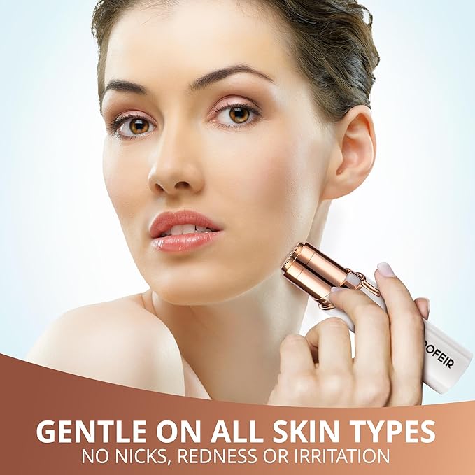 - Gentle and Painless: Specifically designed for women's delicate skin, featuring a dual-blade circular design, providing a gentle and painless hair removal experience. Ensures smooth, hair-free skin without causing irritation or discomfort. Easily removes peach fuzz from the face, upper lip, chin, cheeks, and jawline.