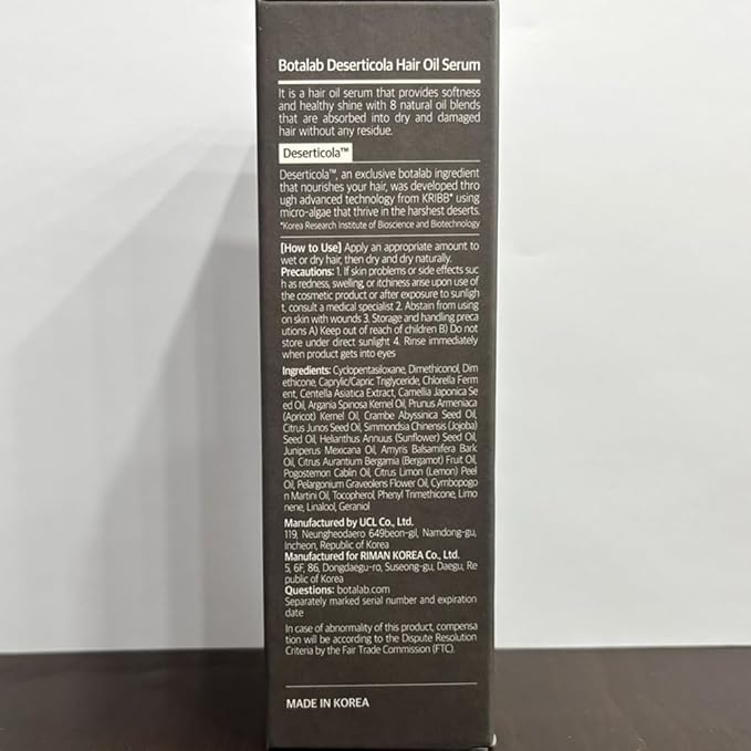 BOTALAB Korean Beauty Deserticola Hair Oil Scalp Serum Aids against hair thinning nourishes hair follicles Repair Frizz Control & Shine for Dry Damaged Hair Growth - 100ml / 3.38 fl. Oz.