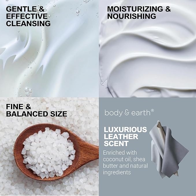 - Care Package for Men: Meticulously selected essentials ensure a thorough and indulgent experience; The body scrub and loofah offer ultimate exfoliation, enhancing the nourishment from our leather-scented products