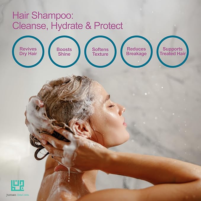 Juman Dead Sea Hydrating Shampoo with Essential Argan Oil | Aloe Vera, Vitamin E, & Vitamin B5 Infused Hair Shampoo | Hydrates, Restores & Protects | For Dry & Normal Hair | SLS & Paraben Free