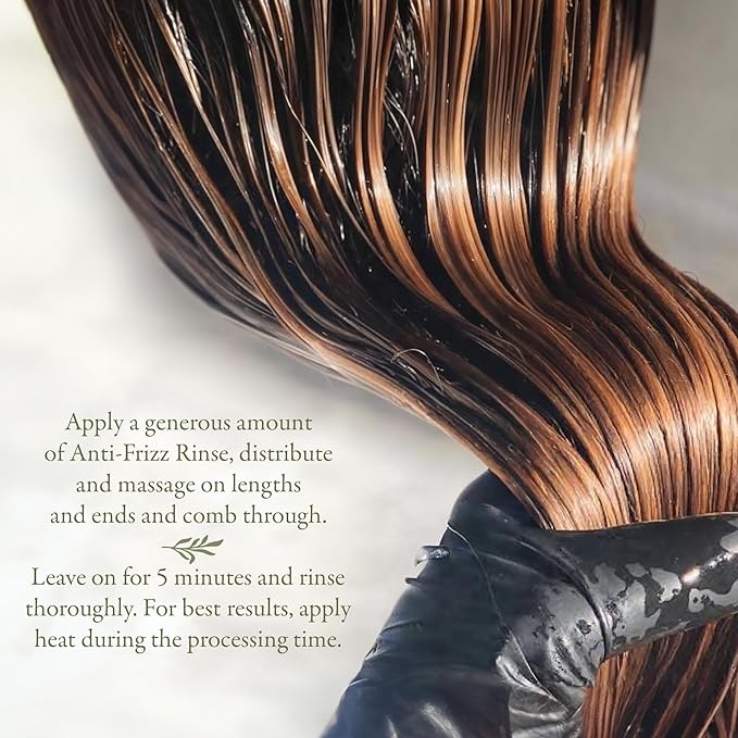 - DIRECTIONS: Apply a generous amount of Anti-Frizz Rinse, distribute and massage on lengths and ends; comb through. Leave on for 5 minutes and rinse thoroughly. For best results, apply heat during processing time. There is a shampoo and conditioner for every hair type and need (Refresh, Moisture Rich, Volume or Anti-Frizz formulas) in 8.5 oz or 32 oz Pro Size