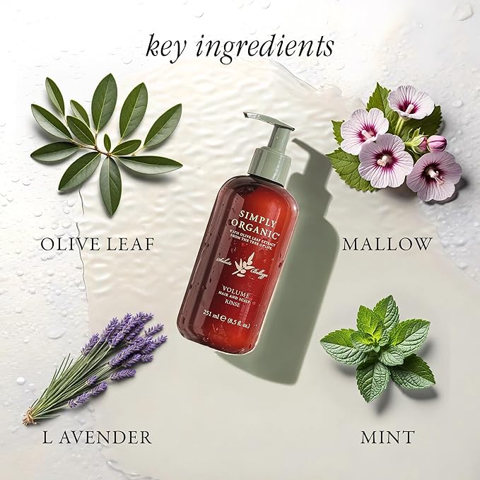 SIMPLY ORGANIC Thinning Hair Volumizing Deep Conditioner Scalp Rinse, Made in Italy, All Natural Cruelty Free Hair Care for Women & Men, Lavender, Mint, Olive Leaf Extract, 251ml/8.5floz, VOLUME
