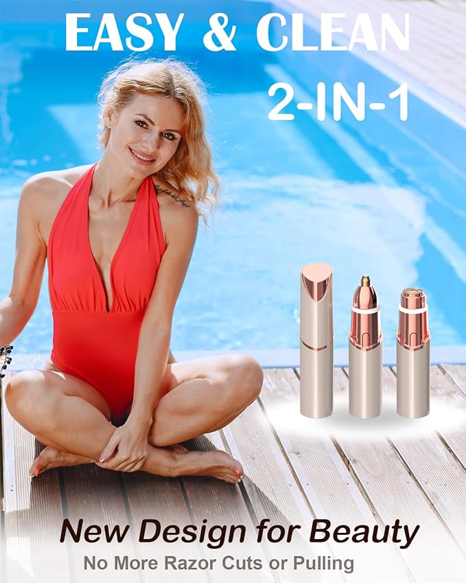 - [2-IN-1 Facial Trimmer] Including one facial trimming head for face, lips, chin, peach fuzz, arms, legs, bikini area, body. The other is eyebrow trimming head for eyebrow, nose hair, ear hair. Easy to replace the blade head, get one for all