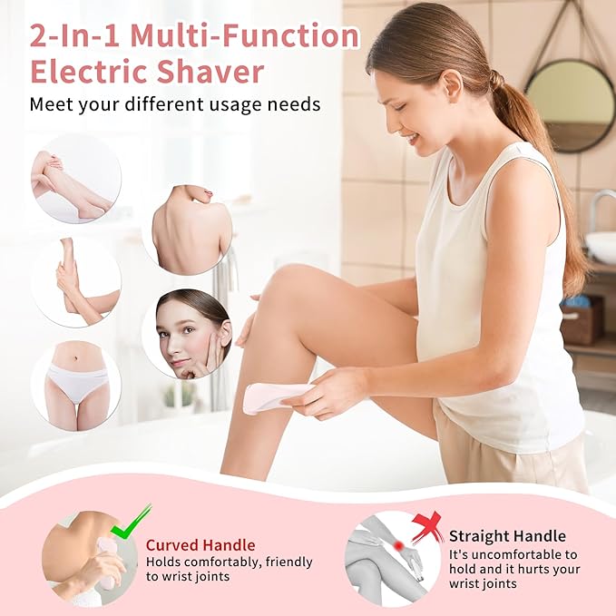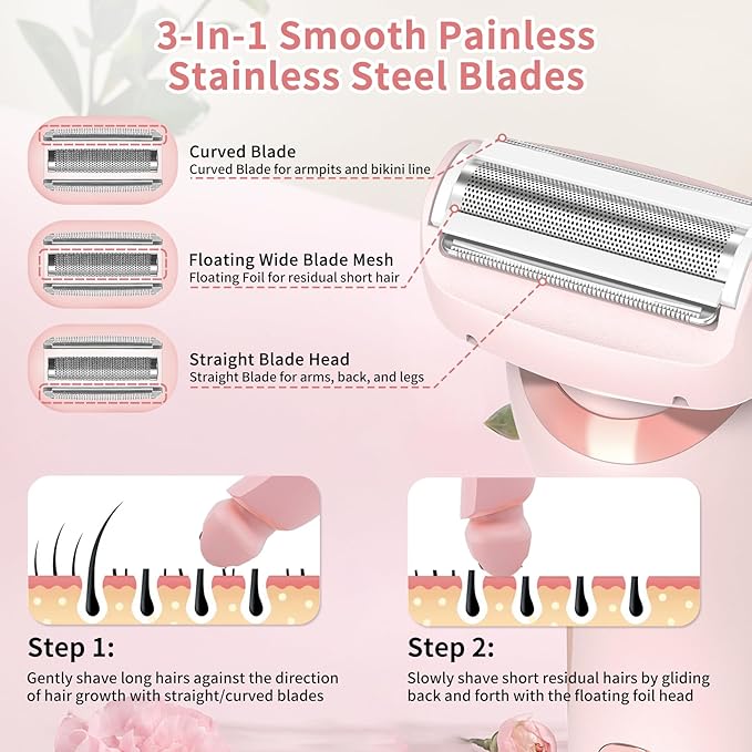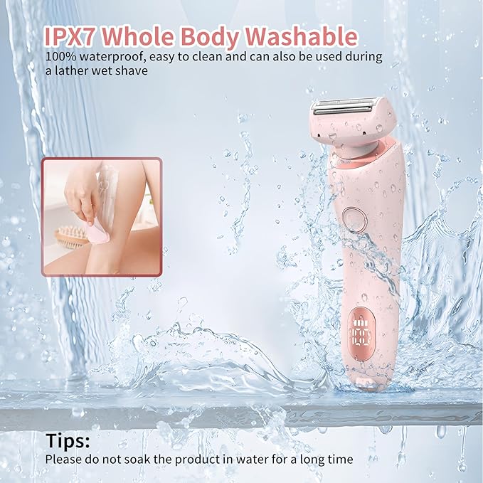 - 💞【Wet & Dry IPX7 Waterproof】This newly upgraded women's electric shaver is ultra waterproof to enhance your grooming experience whether you shave in the shower or wash your face! Effortlessly remove unwanted hair under running water for a hassle-free experience. This rugged electric shaver for Women is capable of being submerged underwater for up to 30 minutes at a depth of 1 meter, ensuring its safety and durability for your daily use