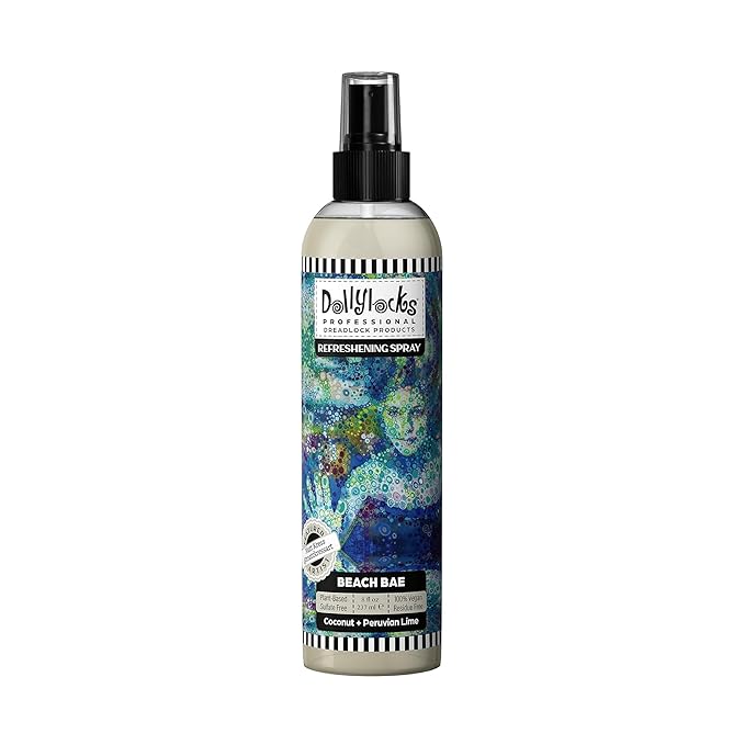 Dollylocks Refreshening Spray – Residue-Free Dreadlock & Loc Moisturizer Spray, Plant Based Deodorizer & Conditioner for Dreads,Vegan & pH-Balanced (Beach Bae Scent, 8oz)