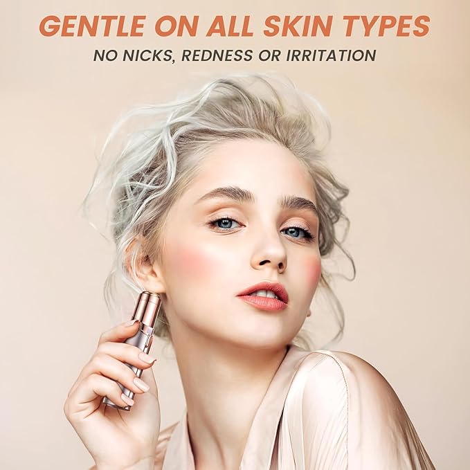 - Painless Epilator for Women:Champagne Gold ,Newly polished exterior for a smoother, brighter feel. Round, low-friction protective head prevents skin damage.