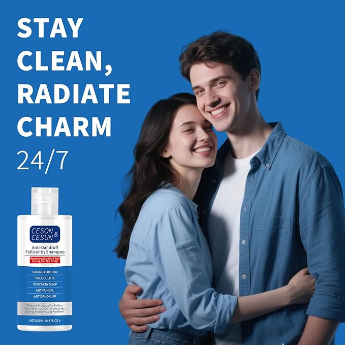 Ceson&Cesun Anti-Fungal/Anti Dandruff 2 in 1 Shampoo for Folliculitis, Scalp Psoriasis & Seborrheic Dermatitis, Itchy & Dry Scalp Relief, Nourishes, Hydrates, Fresh Scent, Safe For Color-Treated Hair