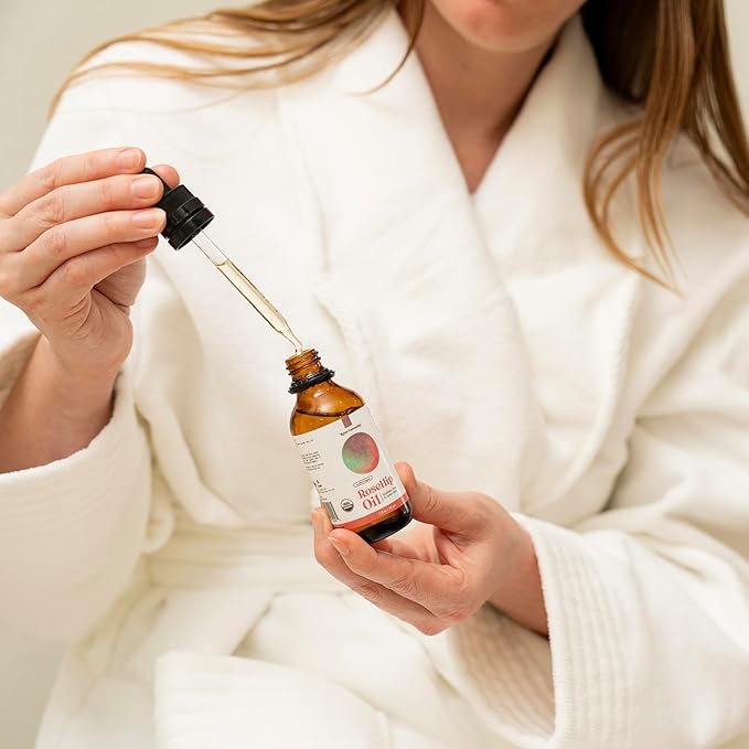 - When using potent organic essential oils for skin, our rosehip oil serves as an excellent carrier oil, offering effective dilution and smooth application for safe, balanced use.