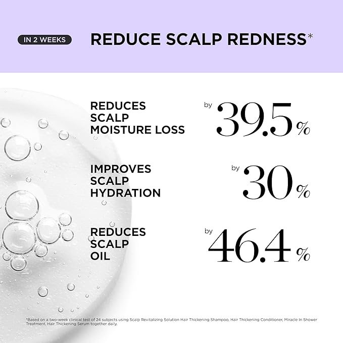- CLINICALLY PROVEN: In 2 Weeks:Reduces hair loss due to breakage by 82.2%*, Reduces scalp redness, Reduces scalp moisture loss by 39.52%, Improves scalp hydration by 30%, Reduces scalp oil by 46.42%