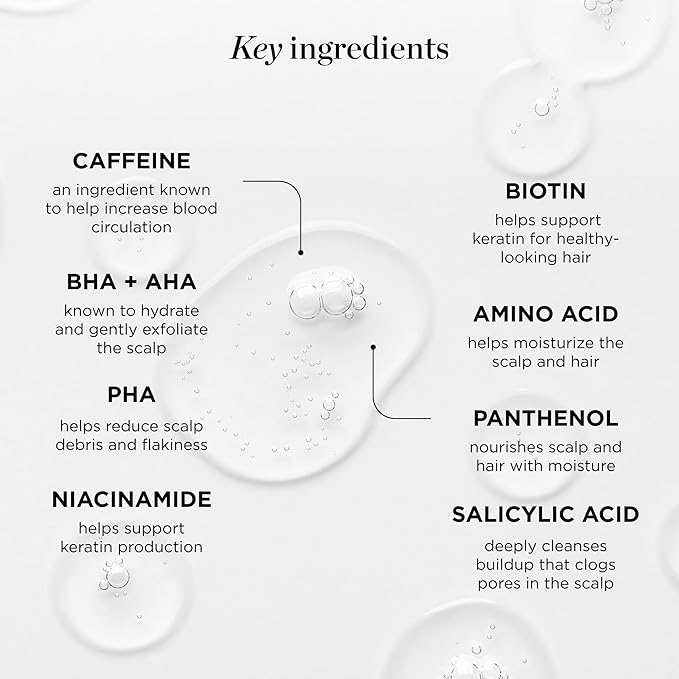 - EXFOLIATES, CLEANSES, AND MOISTURIZES, INCREASING CIRCULATION AND ENCOURAGING HAIR GROWTH AND STRENGTH. Formulated with biotin, rosemary leaf extract, salicylic acid, panthenol, niacinamide, caffeine and formulated without parabens, silicones, sulfates and gluten.