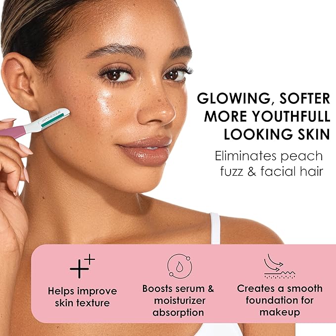 - 7+ SKIN BENEFITS IN ONE TOOL: Instantly reveal a radiant glow, eliminate peach fuzz, and improve skin texture while hydrating, exfoliating, and enhancing skincare absorption—perfect for a smooth, flawless makeup base.