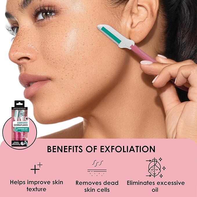 - INSTANTLY GLOWING, SILKY-SMOOTH SKIN: The Japonesque Comfort+ Dermaplaner combines ultra-precision Japanese blades and a soothing aloe comfort strip leaving your skin visibly brighter and softer.