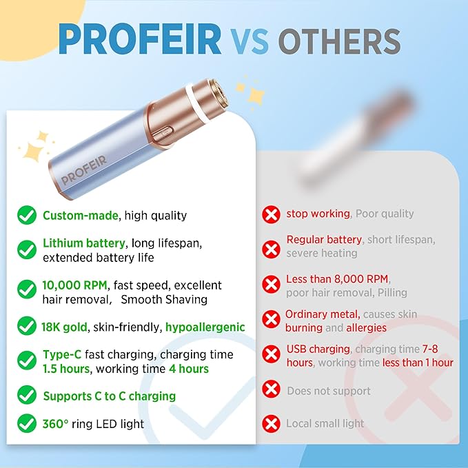 - Safe and Hypoallergenic: Featuring 18K gold-plated blades, it is hypoallergenic and suitable for all skin types. Minimizes the risk of skin reactions, making it ideal for sensitive skin, ensuring you feel safe and comfortable during use.