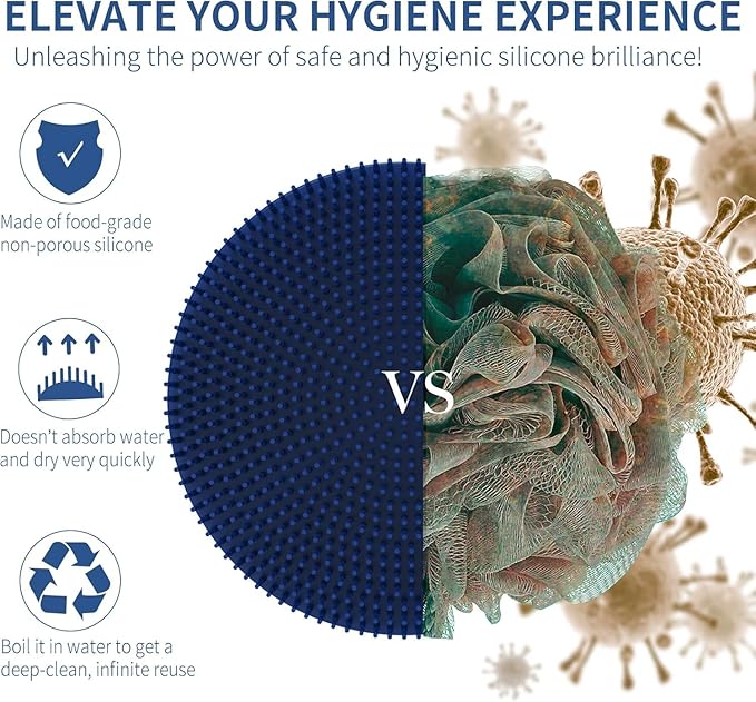 - MORE HYGIENIC OPTION: Unlike loofah, wash cloth and exfoliating sponge, BEAUTAIL body scrubber is made from non-porous, self-cleaning silicone, which doesn't absorb water, dries quickly, so it isn’t as susceptible to building up with unpleasant substances.