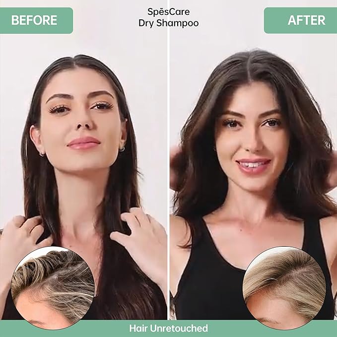 - RESTORES FLUFFY HAIR IN FIVE SECONDS: Spescare Super Dry Spray absorbs excess oil and revitalizes hair. Simply spray it on the roots or strands to absorb oil, adding texture and volume. Perfect for second-day use or a quick touch-up, the Dry Spray refreshes your hair while leaving it soft, manageable, and residue-free. Perfect for anyone who wants clean, fresh hair without the hassle of washing and blow-drying every day.