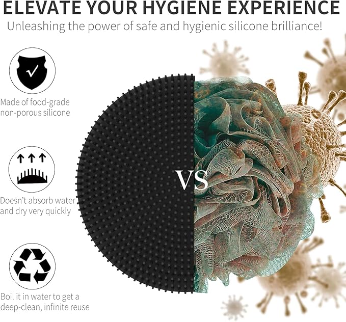 - MORE HYGIENIC OPTION: Unlike loofah, wash cloth and exfoliating sponge, BEAUTAIL body scrubber is made from non-porous, self-cleaning silicone/plastic, which doesn't absorb water, dries quickly, so it isn’t as susceptible to building up with unpleasant substances.