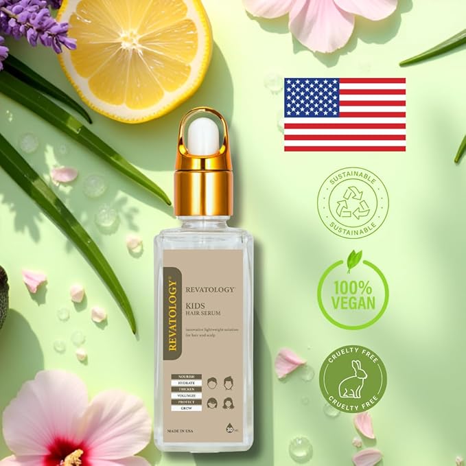 REVATOLOGY Kids Hair Growth & Conditioning Serum (Made in USA) Clinical Leave-in Formula with 30 botanicals for Scalp Care, anti-dandruff, anti-frizz for all hair types | Chemical & Cruelty free