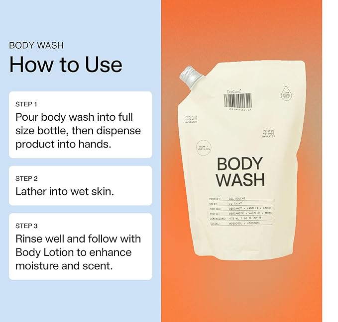 - Lather & Indulge: Gently lather into wet skin, leaving your body cleansed, moisturized, and lightly scented.
